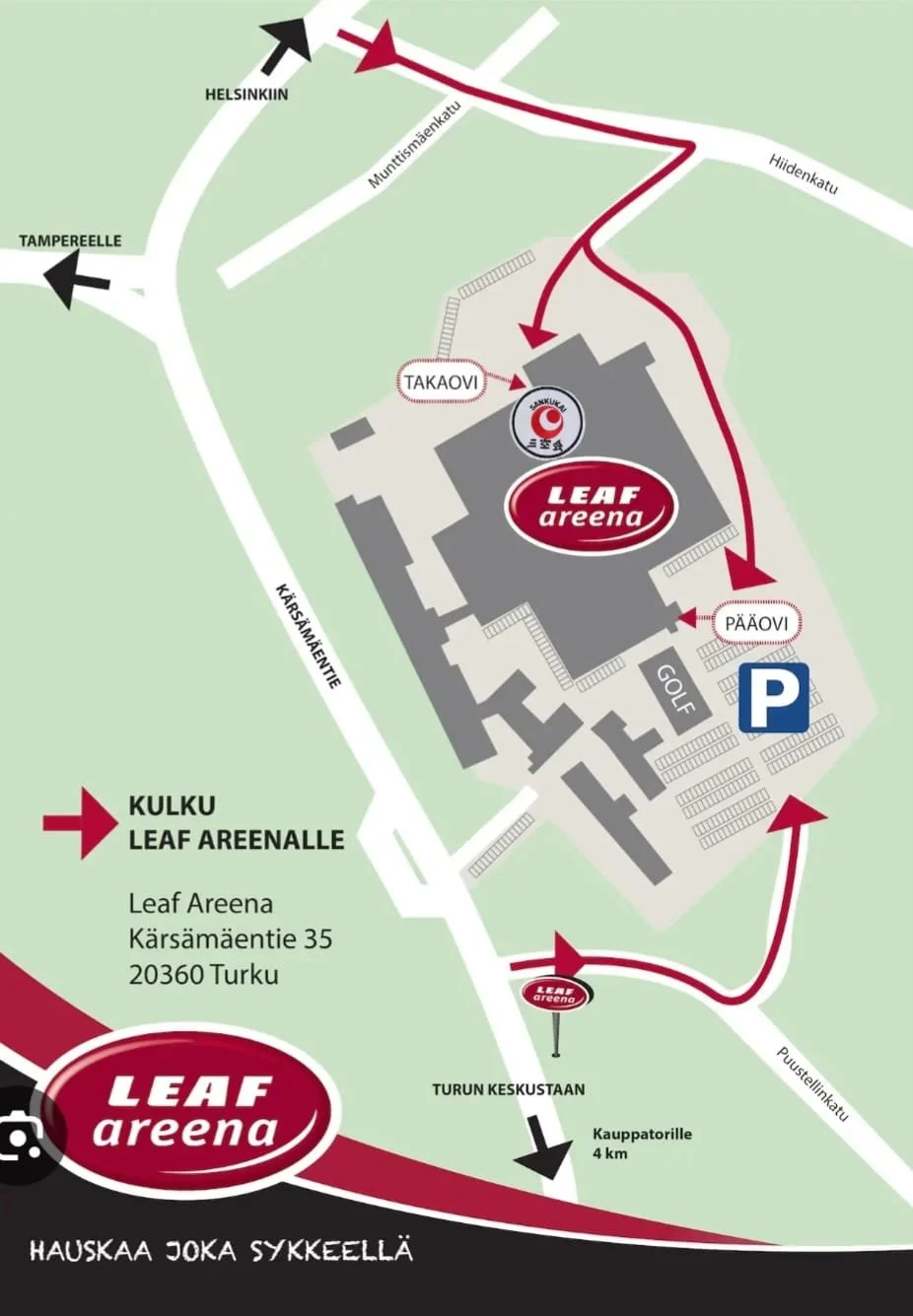 Salimme sijaitsee Turussa, Leaf Areenalla osoitteessa Hiidenkatu 7. Helpoiten perille löytää takaoven kautta.